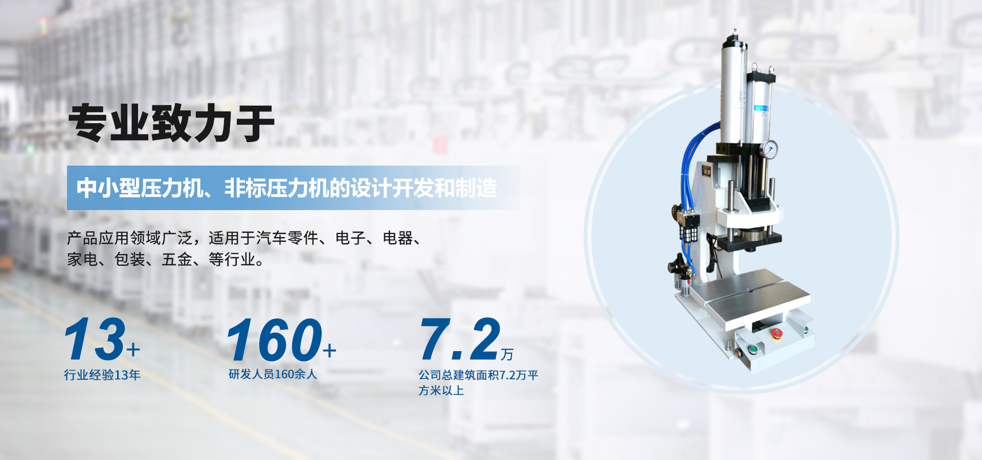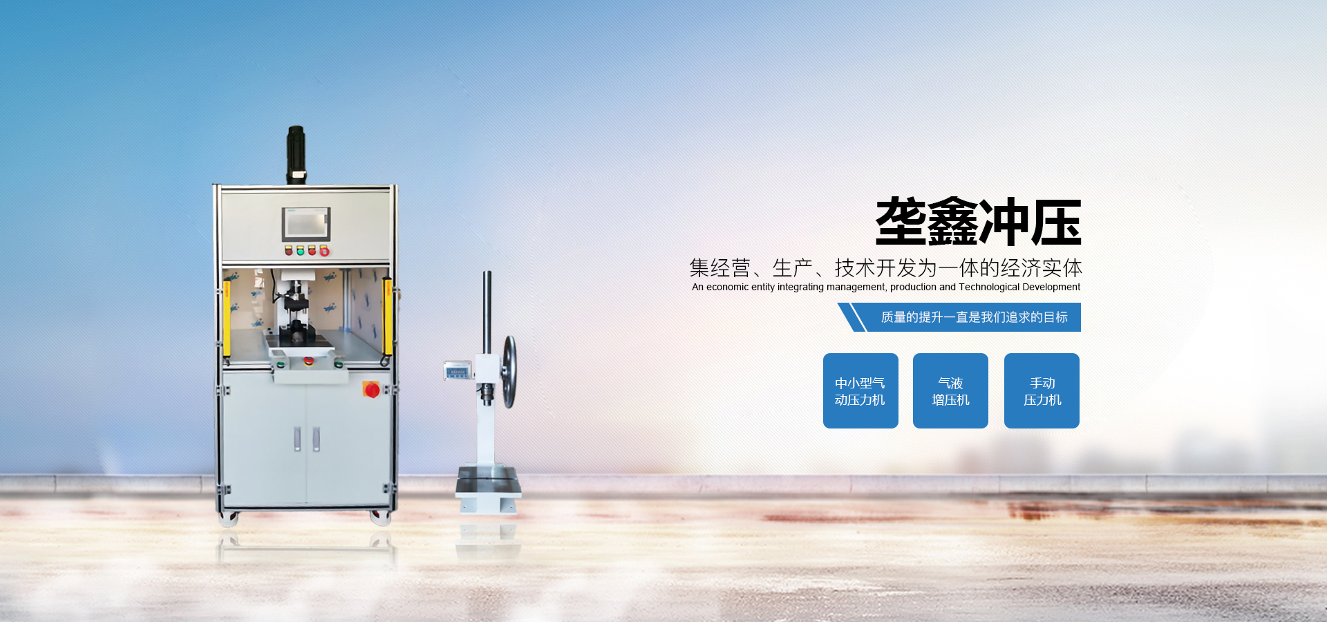 煙臺(tái)壟鑫沖壓設(shè)備有限公司是集經(jīng)營(yíng)、生產(chǎn)、技術(shù)開發(fā)為一體的經(jīng)濟(jì)實(shí)體,專業(yè)致力于中小型壓力機(jī)、非標(biāo)壓力機(jī)的設(shè)計(jì)開發(fā)和制造。在引進(jìn)德國(guó)、日本等國(guó)家先進(jìn)的鉚壓控制技術(shù)及機(jī)器設(shè)計(jì)理念的基礎(chǔ)上,結(jié)合相關(guān)行業(yè)的實(shí)際需要,開發(fā)出各種臺(tái)式、落地式氣動(dòng)壓力機(jī)、手動(dòng)壓力機(jī)、氣液增壓機(jī)、氣液增力缸、旋鉚機(jī)、無(wú)鉚釘鉚接機(jī)等鉚接設(shè)備。產(chǎn)品應(yīng)用領(lǐng)域廣泛,適用于汽車零件、電子、電器、家電、包裝、五金、等行業(yè)。公司視質(zhì)量為生命,并一貫遵循對(duì)每一臺(tái)產(chǎn)品負(fù)責(zé),對(duì)每一位用戶負(fù)責(zé),真誠(chéng)為您服務(wù)。 自公司成立以來(lái),秉承“誠(chéng)信,創(chuàng)新,專業(yè)”的經(jīng)營(yíng)理念,以優(yōu)質(zhì)的產(chǎn)品,完善的售后服務(wù),樹立良好的品牌形象,服務(wù)于廣大新老顧客。我們竭誠(chéng)于各位同仁攜手并進(jìn),共謀發(fā)展。